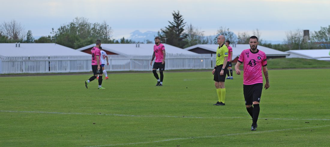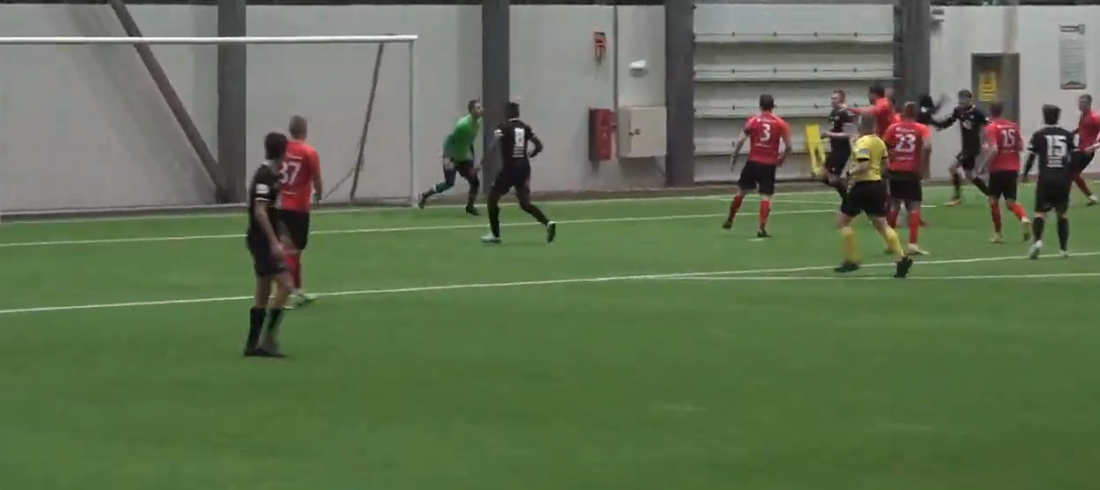 Rauð alda skall á Akraneshöllinni þegar Papa skoraði sitt fyrsta mark fyrir klúbbinn í heitri Akraneshöll.